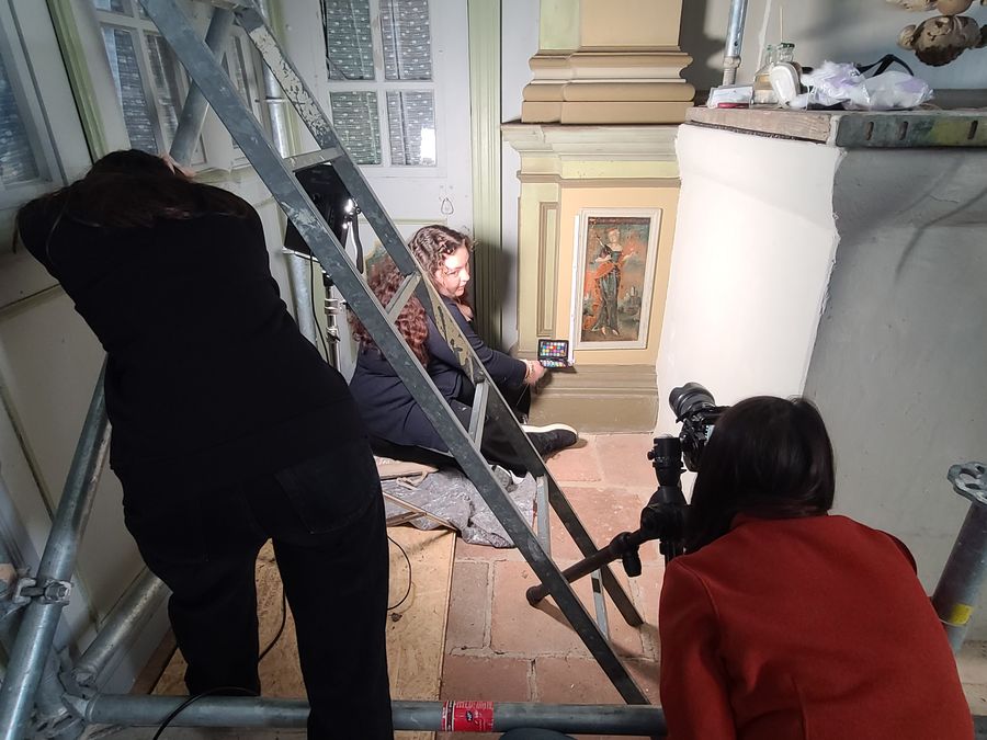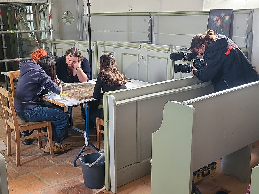 Last week, the paintings at the altar in Spröda – from which the varnish had been removed at the start of the summer school – were retouched and then photographed. Foto Oliver Tietze