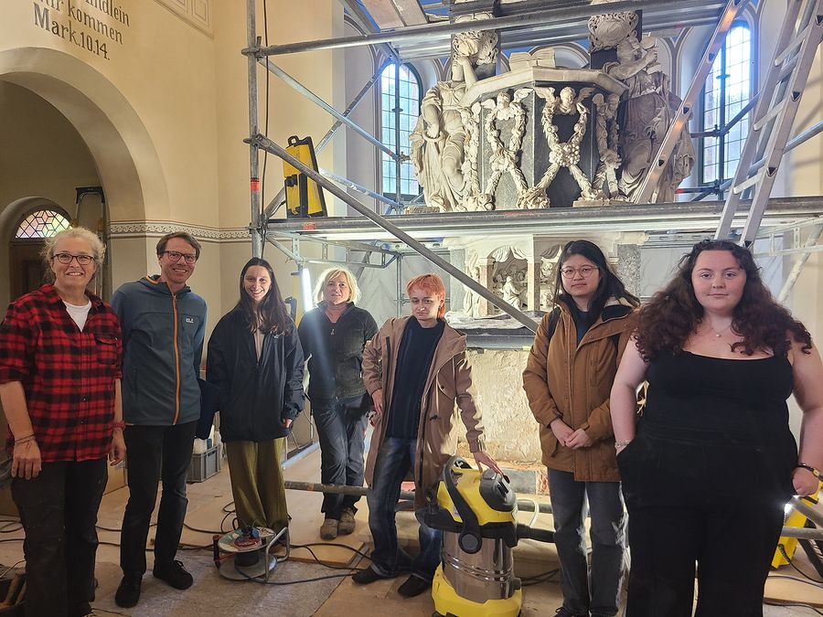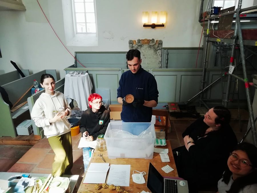 Our summer school goes beyond mere practical training: in seminars on the practical work, participants deepen their knowledge of restoration techniques, materials, and art-historical contexts. Excursions to other cultural monuments and museums in the area offer insights into the regional culture and history, and in-depth insights into interesting restoration projects. The main objective of the parishes, namely the preservation and restoration of their churches, is combined with education. Education does not only work in one direction, from teacher to student, but also vice versa. The participants bring different perspectives and techniques from their countries and universities, which inspire and enrich the regional professional world.