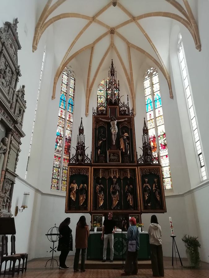 During the excursion to Dehlitsch, the Gothic altarpiece in the town church was visited. Foto Carola Grandke